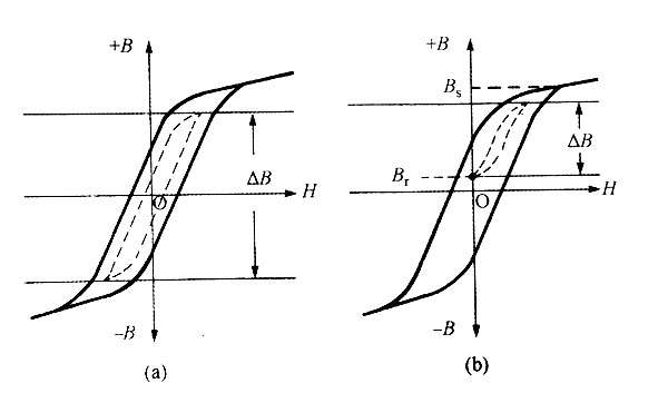 (a)B/H回環(huán)表示推挽工作情況下的B/H工作范圍 (b)表示單端正激和反激工作情況下受限的B/H工作范圍