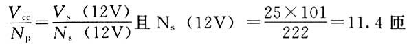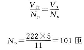因此較小副邊電壓是10V。允許二極管和電感繞組上有1V的壓降,V,變成11V。這必須在90V的較小充電器輸入和16。5s的較大的導(dǎo)通時間時是有效的。 原邊直流電壓為90V時,Vcc是 Vcc=90×1.3×1.9=222V 因原邊Nmin-=100匝,每匝電壓(Vpt)是