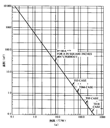 | 變壓器的溫升(相對于環(huán)境溫度)取決于磁心損耗和線圈損耗(即銅損)之和,另外還與輻射表面的大小有關(guān)。氣流流經(jīng)變壓器可以減小變壓器溫升,降低的程度與氣流速度(立方英尺每分鐘)有關(guān)。 要想精確、系統(tǒng)地計算出變壓器的溫升是不現(xiàn)實的,但是基于熱阻這一概念可以得到一些經(jīng)驗曲線,估算出來的溫升誤差一般在10℃以內(nèi)。散熱片的熱阻R定義為散熱片每耗散一瓦功率所帶來的溫升(通常以℃為單位),溫升的增加dT與功率損耗P之間的關(guān)系為:dT=PR1。 提示:根據(jù)參考文獻18,利用變壓器總的損耗(磁心損耗以及銅損之和),變壓器有效散熱面積的相關(guān)信息以及散熱方式有可能比較精確地計算出變壓器溫升。 一些適配器廠家直銷磁心廠家還給出了不同產(chǎn)品的R值,指出磁心表面的溫升為R1與磁心損耗和銅損之和的乘積。有經(jīng)驗的用戶通常假定變壓器內(nèi)部較熱點(一般位于磁心中心柱)的溫升比磁心外表面高10~15℃。 溫升不僅和輻射表面積大小有關(guān),還與變壓器總的功率損耗有關(guān)。輻射表面所耗散的功率越大,輻射表面和周圍空氣的溫差就越大,表面更容易冷卻,也就是說表面的熱阻越低。 因此,在估算變壓器溫升時,往往將變壓器總的外表面積等效成散熱片的輻射表面積總的外表面積為(2x寬度x高度+2×寬度x厚度+2×高度x厚度)。等效散熱片的熱阻可以根據(jù)總的功率損耗(磁心損耗與銅損之和)來校正。 散熱片熱阻與表面積的關(guān)系曲線如圖7。4(a)所示,這是一條經(jīng)驗曲線,是根據(jù)大量不同廠家生產(chǎn)的不同尺寸和形狀的散熱片的平均值得來的。圖中曲線對應(yīng)于1W功率級的熱阻值,在雙對數(shù)坐標(biāo)中表現(xiàn)為一條直線。 盡管片狀散熱器的熱阻在某種程度上與葉片的形狀、葉片間的空隙和葉片是否黑化或鍍鋁有關(guān),但這些都只是次要因素。在某種程度上,可以說熱阻完全由散熱片輻射表面的面積決定。 不同散熱器廠家的產(chǎn)品目錄中也會給出如圖7。4(b)所示的熱阻與功率損耗關(guān)系的經(jīng)驗曲線。