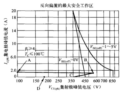 ![]() 若Q1關(guān)斷之前流過(guò)它的峰值電流為3.45A,則漏感尖峰幅值為(3.45/2)x103=178V因此,晶體管承受的的峰值電壓為2V+178=547V。雖然上述計(jì)算并非非常精確,但這一漏感尖峰的值足以解釋產(chǎn)生二次擊穿的原因了。 圖中,美規(guī)充電器關(guān)斷前Q1工作在集電極電壓一電流曲線(xiàn)的A點(diǎn),電流值為3.45A,電壓值近乎為0V。晶體管關(guān)斷時(shí),它的負(fù)載線(xiàn)軌跡為ABCD。關(guān)斷瞬時(shí)漏感維持總電流大小不變,但是原先流過(guò)晶體管Q1的電流1的一半流向C1,剩下的1。73A的電流仍流過(guò)Q1。品體管集電極電壓一電流工作點(diǎn)沿著AB軌跡線(xiàn)水平移動(dòng)。在B點(diǎn),電流仍然為1。73A,而電壓為547V。短暫的漏感尖峰持續(xù)時(shí)間后,集電極電壓恢復(fù)到2V,直到磁心復(fù)位之后,集電極電壓才恢復(fù)到V,并保持到下一次導(dǎo)通之前(見(jiàn)圖)。由圖可知,如果關(guān)斷時(shí)晶體管上有5V反向電壓,則547V,1.73A時(shí)晶體管仍工作在 RBSOA曲線(xiàn)內(nèi),二次擊穿是不會(huì)發(fā)生的。如果不在基極加反向電壓,晶體管工作狀態(tài)就會(huì)超越 RBSOA曲線(xiàn),就有可能二次擊穿。 因此,雖然緩沖電容的首要作用是延長(zhǎng)集電極電壓的上升時(shí)間,但還需要選擇比式計(jì)算出來(lái)的值大的電容來(lái)減小漏感尖峰。當(dāng)電源適配器輸出功率較大時(shí),即使有5V的基極反向驅(qū)動(dòng)來(lái)加速關(guān)斷,但由于關(guān)斷負(fù)載曲線(xiàn)水平部分的電流很大,漏感尖峰仍然可能超出RBSOA曲線(xiàn)。這就更需要容值更高的緩沖電容。