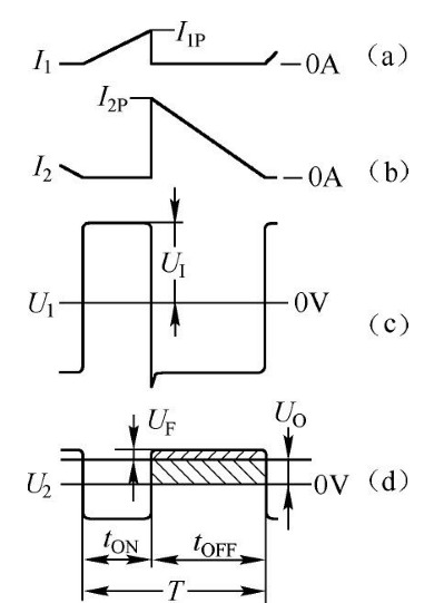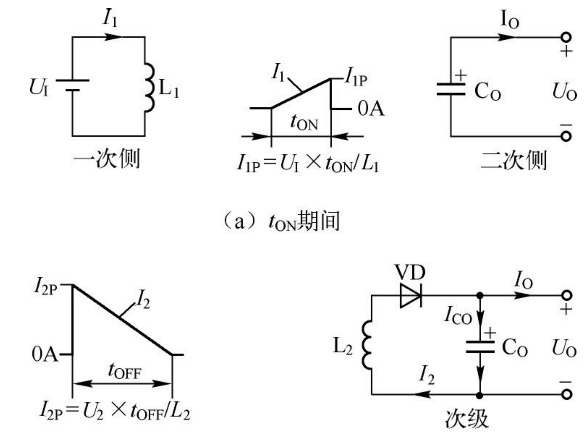 | 自激式電源適配器利用調(diào)整管、變壓器輔助繞組構(gòu)成正反饋通路,實(shí)現(xiàn)自激振蕩,再借助反饋信號穩(wěn)定電壓輸出。由于調(diào)整管兼作振蕩管,所以無須專設(shè)振蕩器,故所用的元器件較少,電路簡單,成本低,在一定程度上簡化了電路。由于自激式電源適配器經(jīng)濟(jì)實(shí)用,目前仍有較多的電子設(shè)備采用自激式電源適配器,如手機(jī)充電器、打印機(jī)、自動(dòng)化儀器儀表、電視機(jī)和顯示器等。 電源適配器廠家玖琪實(shí)業(yè)為大家講述變壓器耦合型自激式電源適配器基本電路的構(gòu)成、原理和特征波形,在此基礎(chǔ)上,以幾種電子設(shè)備的實(shí)例電路為載體,結(jié)合關(guān)鍵點(diǎn)的電壓或波形,一一解析它們的工作原理,希望引領(lǐng)讀者進(jìn)入電源適配器的萬千世界。 自激式電源適配器的工作原理 現(xiàn)在所有由市電供電的AC-DC設(shè)備幾乎全部采用變壓器耦合型電源適配器,也稱為隔離型電源適配器(2)。功率管周期性通、斷,控制開關(guān)變壓器一次繞組存儲(chǔ)輸入電源的能量,通過二次繞組進(jìn)行能量釋放。顯然,電源適配器的輸入與輸出是通過變壓器的磁耦合傳遞能量的。由于變壓器繞組之間是絕緣的,因此一、二次繞組完全隔離,即“熱地”和“冷地”是絕緣的,且絕緣電阻和抗電強(qiáng)度均可達(dá)到很高,這一特點(diǎn)對用電安全尤為重要。 1.自激式電源適配器的定義 開關(guān)管的激勵(lì)脈沖是由變壓器輔助繞組與開關(guān)管構(gòu)成的正反饋環(huán)路自激振蕩產(chǎn)生的,被稱為自激式電源適配器。由于自激式電源適配器的調(diào)整管兼作振蕩管,因此無須專設(shè)振蕩器。除非特別說明,本書講述的自激式電源適配器均是指自激式變壓器耦合型電源適配器。下面就介紹這方面的知識。 2.自激式電源適配器的特點(diǎn) ①自激式電源適配器的結(jié)構(gòu)簡單,生產(chǎn)制造成本低廉。 ②自激式電源適配器的脈沖信號是自激振蕩產(chǎn)生的,是一種非固定頻率的轉(zhuǎn)換電路,隨輸入電壓和負(fù)載的變化而變化,輕載時(shí)開關(guān)頻率較高或間歇振蕩,滿載時(shí)頻率會(huì)自動(dòng)降低。 ③自激式電源適配器在占空比D發(fā)生改變時(shí),開關(guān)管的IC與UCE相對值發(fā)生變化,因此D變化范圍較小,一般小于50%。 ④自激式電源適配器具備一定的自保護(hù)功能,一旦負(fù)載過重,必然破壞反饋條件,振蕩將因損耗過大而減少或間歇振蕩,因此保護(hù)電路比較簡單,這是自激式電源適配器的一大優(yōu)點(diǎn)。 ⑤自激式電源適配器的電流峰值高、紋波電流大,由于工作頻率隨輸入電壓和負(fù)載電流的變化而變化,在高功率、大電流工作時(shí)穩(wěn)定性差,故僅適宜60W以下的小功率場合。由于許多辦公設(shè)備、手機(jī)充電器和儀器儀表等都在這個(gè)功率范圍之下,故自激式電源適配器的使用相當(dāng)普遍。 自激式電源適配器的工作原理 圖為自激式電源適配器的基本電路。UI是輸入交流電壓經(jīng)整流的直流電壓;CI是整流電壓的濾波電容;是功率開關(guān)管VT的啟動(dòng)電阻;RB、CB與變壓器輔助繞組構(gòu)成VT的振蕩電路;T是開關(guān)變壓器,一次繞組用于儲(chǔ)能及一、二次繞組之間的能量耦合,輔助繞組產(chǎn)生正反饋信號;整流二極管VD和電解電容CO組成整流濾波電路,輸出平滑的直流電壓UO給負(fù)載RL供電。 ![]() 初始上電時(shí),電阻給VT提供啟動(dòng)電流開始導(dǎo)通。VT一旦導(dǎo)通,變壓器T一次繞組因有電流流過而發(fā)生自感,自感電動(dòng)勢(或自感電壓)U1的方向?yàn)椤吧险仑?fù)”,阻止電流的增大;另一方面,一次繞組與二次繞組、輔助繞組發(fā)生互感。根據(jù)變壓器T同名端符號(圓黑點(diǎn))可知,二次繞組感應(yīng)動(dòng)勢U2的方向?yàn)椤吧县?fù)下正”,二極管VD反偏截止;輔助繞組感應(yīng)動(dòng)勢UA的方向也為“上正下負(fù)”,加速VT導(dǎo)通。 當(dāng)VT趨向于截止時(shí),一次繞組因電流減小而發(fā)生自感,同時(shí),一次繞組與二次繞組、輔助繞組發(fā)生互感。所有繞組的電壓極性反轉(zhuǎn),一次繞組自感電動(dòng)勢的方向阻止電流的減小(此時(shí)一次繞組自感電動(dòng)勢U1與電源電壓UI順向疊加),二次繞組感應(yīng)電動(dòng)勢的方向使二極管VD正偏,輔助繞組感應(yīng)電動(dòng)勢UA的方向加速VT截止。 關(guān)鍵節(jié)點(diǎn)電壓和支路電流波形如圖3-2所示。在VT導(dǎo)通(tON)期間,變壓器T一次繞組從電源電壓UI蓄積能量;在VT截止(tOFF)期間,變壓器T蓄積的能量釋放給負(fù)載。在VT從導(dǎo)通到截止轉(zhuǎn)換瞬間,變壓器一、二次繞組依次出現(xiàn)峰值電流I1P、I2P(3)(見圖(a)、(b))。一、二次繞組均為脈沖電壓,且相位相反(見圖(c)、(d))。UF為整流二極管導(dǎo)通壓降,U2的正脈沖等于輸出直流UO與UF的疊加。 ![]() tOFF結(jié)束時(shí),變壓器一次繞組感應(yīng)電動(dòng)勢自由振蕩返回到零。VT基極連接的輔助繞組也稱正反饋繞組,因變壓器互感產(chǎn)生正反饋信號控制功率管VT通、斷,即所謂自激振蕩。 由上述工作原理可知,自激式電源適配器是以功率管和變壓器為主要元件組成的開關(guān)轉(zhuǎn)換電路,通過功率管周期性通、斷,將輸入的直流電壓變成脈沖電壓,經(jīng)變壓器由一次