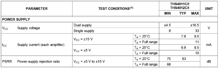 | 電源適配器電壓定義為可使放大器工作在線性區(qū)的可接受的VDD(或+VCC)和VSS(或-VCC)之間的差值。如果電壓差小于規(guī)定值,則放大器很可能無法可靠地工作。如果電源適配器電壓高于規(guī)定值,雖然放大器可以按預(yù)期工作,但由于施加給放大器內(nèi)晶體管的電壓過大,很可能導(dǎo)致器件損壞。在產(chǎn)品數(shù)據(jù)手冊的參數(shù)表中,通常會給出該放大器的絕對較大額定值(AbsoluteMaximumRatings),放大器的電源適配器電壓一定不能夠超過該數(shù)值。例如,OPA690的電源適配器電壓較大額定值為±6.5V。 電源適配器電流(IDD、IQ或ICC)指定為空載條件下的電流。通常,當(dāng)放大器帶有負(fù)載時,拉電流主要會從VDD引腳輸出,流經(jīng)運(yùn)放的輸出級然后流向負(fù)載,而灌電流主要會導(dǎo)致VSS增加。 電源適配器參數(shù)(VSS、VDD和IDD、IQ)通常作為獨(dú)立項(xiàng)出現(xiàn)在產(chǎn)品數(shù)據(jù)手冊的參數(shù)表中。該參數(shù)偶而也會作為PSRR參數(shù)的測試條件。圖所示為[1]THS4011、THS4012數(shù)據(jù)表的電源適配器參數(shù)。 ![]() 電源適配器抑制比(PSRR) 1.電源適配器電壓抑制比的定義 電源適配器抑制比(PSRR,PowerSupplyRejectionRatio)是與電源適配器抑制比參數(shù)kSVR相同的。它被定義為電源適配器電壓的改變量與由此引起的輸入失調(diào)電壓改變量之比的絕對值。在一般情況下,電源適配器的兩個端電壓是對稱變化的。它的單位是分貝(dB)。 電源適配器電壓會影響到輸入差分對的偏置點(diǎn)。由于輸入電路固有不匹配,偏置點(diǎn)的改變會引起失調(diào)電壓的改變,進(jìn)而引起輸出電壓的改變。 對于雙電源適配器運(yùn)放,PSRR=ΔVCC±/ΔVOS或者ΔVDD±/ΔVOS。ΔVCC±中的正負(fù)號表示正負(fù)電源適配器是對稱地改變的。對于單電源適配器運(yùn)放,PSRR=ΔVCC/ΔVOS或者ΔVDD/ΔVOS。同時還應(yīng)該看到,PSRR的生成機(jī)理是與共模抑制比CMRR相同的。因此,在數(shù)據(jù)手冊中,PSRR也被歸入直流參數(shù)。當(dāng)把PSRR與頻率的關(guān)系畫成曲線時,這條曲線將隨頻率的增加而下降。 如果改變運(yùn)放的供電電壓,其輸出電壓本不應(yīng)該發(fā)生變化,但是實(shí)際上它的確會有變化。如果供電電壓改變X伏時引起的輸出電壓變化量與差分輸入改變Y伏引起的輸出變化相等,那么運(yùn)放的PSRR=X/Y。在PSRR的定義中,假設(shè)電源適配器正負(fù)電壓同時向相反方向改變同樣的大小,否則將引起共模變化,令分析更為復(fù)雜。PSRR不同,對電源適配器正負(fù)電壓的抑制效果也不同。 2.電源適配器電壓波動對輸出電壓的影響 電源適配器電壓波動對輸出電壓有直接的影響。 〖舉例〗對于電池供電的放大器電路要求運(yùn)放必須具有良好的電源適配器抑制性能。在圖1.1.2所示電路中,使用電池來為放大器供電,放大器被配置為具有高閉環(huán)增益101V/V。 ![]() 在電池的生命周期中,隨著使用時間的推移,電池的輸出電壓會從5.75V逐漸降至4.75V。如果該放大器的電源適配器抑制比為500μV/V(或66dB),隨著時間推移,放大器輸出端的誤差將為50.5mV。在一個滿量程為4.096V的12位系統(tǒng)中,這相當(dāng)于在電池的生命周期中,失調(diào)電壓變化量的50.5倍。 PSR(V/V)=ΔVOS/ΔVSUPPLY VOUT=(1+RF/RIN)(VIN+VOS) 在電池供電應(yīng)用中,可以看見電池供電電壓會在電池的整個生命周期中變化幾百毫伏。若將此類應(yīng)用中運(yùn)放配置為高閉環(huán)增益,則要求運(yùn)放必須具有良好的電源適配器抑制性能。 3.電源適配器抑制比的頻率響應(yīng) 電源適配器抑制比參數(shù)量化了放大器對電源適配器變化的敏感度。理想情況下,電源適配器抑制比應(yīng)該是無窮大。一般放大器的電源適配器抑制比的范圍為60~100dB。 與放大器的開環(huán)增益(AOL)特性一樣,PSRR也是頻率的函數(shù),隨著頻率的升高,PSRR的數(shù)值開始下降。如圖1.1.3所示[4],電源適配器產(chǎn)生的變化(或者噪聲,疊加在電源適配器上的噪聲也會引起電源適配器電壓的變化)在1kHz以下,+PSRR約為130dB;之后,隨著頻率的上升,PSRR不斷下降。而-PSRR隨著頻率的上升,不斷下降。很明顯,對高頻電源適配器變化(噪聲)的抑制能力要低于對直流和低頻電源適配器變化(噪聲)的抑制能力。 ![]() 注意:開關(guān)電源適配器產(chǎn)生的噪聲頻率為50~500kHz或者更高。在這些頻率范圍,PSRR的幾乎為零。所以,在電源適配器上的噪聲會引起運(yùn)算放大器在輸出端產(chǎn)生噪聲。對此,必須采用適當(dāng)?shù)呐月罚ㄈヱ睿┘夹g(shù)。 在閉環(huán)系統(tǒng)中,放大器的電源適配器抑制能力略低于理想情況,它表現(xiàn)為失調(diào)電壓誤差的形式(PSRRERROR=ΔVOS)。描述這一誤差的公式如下: PSRR(dB)=20lg(ΔVSUPPLY/ΔVOS) 描述電源適配器抑制能力的公式為 PSR(V/V)=ΔVOS/ΔVSUPPLY 式中,VSUPPLY=VDD-VSS;ΔVOS表示電源適配器電壓變化ΔVSUPPLY時,引起輸出電壓變化ΔVO折合到輸入端的失調(diào)電壓,ΔVOS=ΔVO/ΔAvd。ΔAvd為放大器的直流放大倍數(shù)。 〖舉例〗帶有較小5倍增益的寬電源適配器范圍、軌到軌輸出儀器放大器INA827的PSRR(電源適配器抑制比)與增益和頻率的關(guān)系[5]如圖1.1.4所示,±PSRR(電源適配器抑制比)隨著增益的增加而加大,隨著頻率的增加而減小。