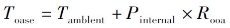 式中,Toase為外殼的工作溫度;Tamblent為環境溫度;Pinternal為內部功率消耗;Rooa為外殼到環境的熱阻抗(Rooa=Roos+Rosa,Roos為外殼到散熱片的熱阻抗,R。^為散熱片到環境的熱阻抗)。