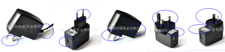 產品結構:6W系列電源適配器外形為插墻式,輸出有帶USB或帶DC線,插腳有美規插腳,歐規插腳,國標插腳,英規插腳,澳規插腳等