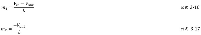 此外,tON的時間段增加的電流為m1tON(n),因此PWM輸入的峰值電壓VC可以用公式3-18來表示。