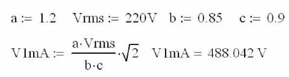選取壓敏電阻的方法 結合前面所述,來看一下本電路中壓敏電阻的型號所對應的相關參數。