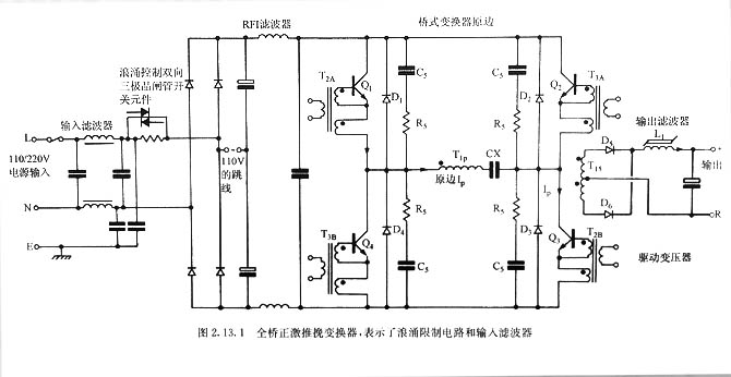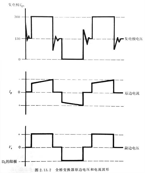 桌面式電源適配器一般情況 圖表示一個典型離線橋式變換器的功率部分。對角的一對開關元件同步工作,并有序地交替。例如,Q1和Q3同時導通,接著由Q2和Q4同時導通。在脈寬控制系統中,存在一段4個開關元件都關斷的時間,應該注意,Q2和Q4導通時,原邊繞組兩端的電壓方向與Q1和Q3導通時相反。 在本例中,使用均衡的基極驅動電路,這使基極驅動電流在任何時候都與集電極電流相配合。該技術特別適合于大功率應用場合。 在關斷期間,穩態條件下,L1中已建立起電流,輸出整流二極管D和D起續流二極管的作用。在L1的強迫作用下,該關斷期間兩個二極管平均分擔電感器的電流(除了有非常小的磁化電流)。由于使用對稱的二極管,副邊繞組兩端的電壓為零,因此原邊繞組兩端的電壓也為零(經過一小段由原邊漏感引起的阻尼振蕩時間后)。典型的集電極電壓波形示于圖2中。