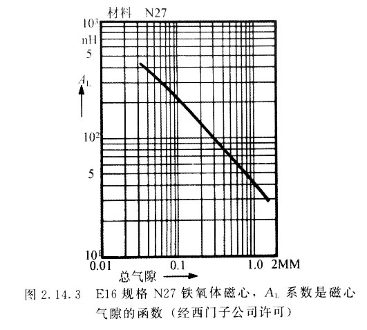 根據(jù)圖2。14。3(為E16磁心建立的數(shù)據(jù)),可以得到A1=59nH時需要的氣隙。 圖中給出的氣隙是0.6mm(0.024in)。