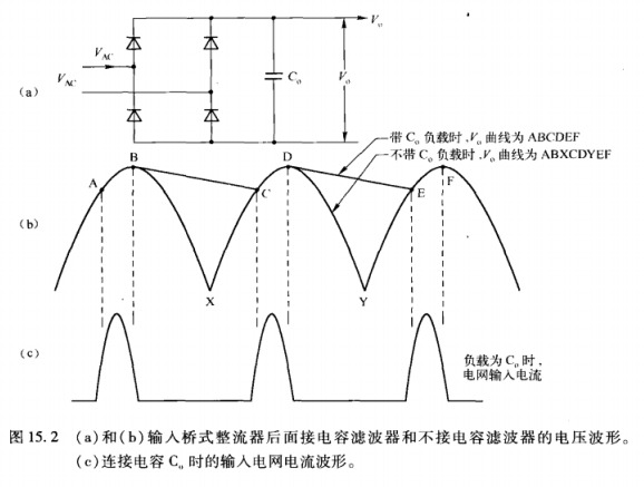 | 在電源適配器開關(guān)調(diào)整器領(lǐng)域,任何電路結(jié)構(gòu)使輸入電網(wǎng)電流非正弦化,或使輸入電網(wǎng)電流是正弦波。但和正弦輸入電壓相位不同,或使輸入電流具有諧波的都會降低功率因數(shù)從而產(chǎn)生功率損耗。與負(fù)載兩端的電壓垂直的輸入電流分量( l sinx)不向負(fù)載提供功率,在輸入電源適配器的內(nèi)部和輸入線路的電阻上消耗功率。 對于橋式整流器接電容濾波器的開關(guān)電源適配器,輸入電網(wǎng)電流是上升和下降很陡的窄脈沖。這些電流脈沖的有效值很高,消耗功率并且產(chǎn)生更多的 RFV/EMI I問題。借用交流電路原理的術(shù)語,稱這種電源適配器的功率因數(shù)較低。功率因數(shù)校正電路的作用就是要消除這樣的電網(wǎng)電流尖峰,使輸入電流成為正弦形狀并且和輸入電壓同相位,而且要得到一個比交流輸入電壓幅值略高的穩(wěn)定直流電壓。 由圖可知,如果沒有濾波電容C并且負(fù)載是純電阻,那么電壓V將是正弦半波 ABXCDYEH。從整流器整流出來的電流也有相同的正弦半波,且從輸入端吸收的電網(wǎng)電流也是正弦波并且和正弦輸入電壓同相位,功率因數(shù)為1。如果輸入電壓和電流的有效值為V和1,則輸入和輸出負(fù)載功率可表示為V,l 像ABXCDYER圖這樣的正弦半波輸出電壓在許多場合是不可用的。整流器的目的是將輸入交流電壓變換成紋波盡可能小的直流電壓,正因為如此,才接入串容C。來產(chǎn)生波形 ABCDEF。這樣可以產(chǎn)生較高的直流電壓分量(在B和C或D和E的中間)和較低的B-C或C-D的峰一峰值紋波。在B和C或D和E之間,所有整流器二極管都被反偏,沒有電網(wǎng)電流流過,負(fù)載電流由電容C提供。在A、C和E時刻,上升的輸入電壓使整流器二極管正向?qū)ǎ娋W(wǎng)電流流過負(fù)載并給電容充電,補償其單獨給負(fù)載供電時損失的電荷。 選用合適的濾波電容時電網(wǎng)電流波形如圖所示,它是輸入電壓的每個正弦半波前端的一系列電流窄脈沖。濾波電容越大,輸入電流的脈沖寬度越窄,上升和下降得更快,峰值越高,有效值越大。 使用功率因數(shù)校正技術(shù)的目的就是要消除這些窄而陡的電網(wǎng)電流脈沖。這些陡的電流會引起頻射干擾(RF1)問題,更嚴(yán)重的是,它的有效值比所需的負(fù)載輸出功率值要大,這造成濾波電容的溫升提高并降低了其可靠性。