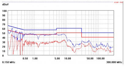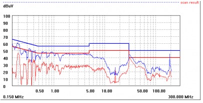 | 一款48W(36V/1.33A)電源適配器整改EMI案例,僅僅是調整了肖特基吸收就把30-40M壓下來。 115Vac低壓30M紅色頂線 ![]() 230Vac高壓30M紅色也頂線 ![]() 調整肖特基吸收后: 115Vac低壓,走勢圖非常漂亮 ![]() 230Vac高壓,走勢圖非常漂亮 ![]() 45.安規距離一覽表,篇幅問題只能排這么多標準 以上僅供參考,針對反激無PFC電路適用。 46.來一個花了很多錢整改的一個12V3A電源適配器案子,加濕器,這幾年加濕器很流行,相信有不少工程師有碰到類似的問題。 這個項目配水泥電阻,輻射測試余量有6個dB以上,一旦接上加濕器一起測試輻射,就..就..就超了,這是很多工程師不愿意發生的意外。 整改過程: 1.輻射超的那張圖沒打印,這是肖特基增加吸收47R+102P的測試結果,余量只有2.01dB 2.這個是加大Y電容,由471P改為102P,發現反而變差了,余量只有0.12dB,兄弟,很尷尬有沒有? 3.Y電容改回去,再改小一點,由102P改回101P,余量2.68dB,看來不能再小了 4.試一下減輕肖特基吸收,電阻47R改為100R,意料之中的結果,余量變小了,1.01dB 5.輸出正負極并一個103P電容,余量2.53dB,此刻樓主已經變得緊張了,因為昂貴的測試費用在腦子里轉著。 6.來個猛一點的,加重肖特基吸收,電容102P改到472P,余量沒了,超了0.65dB,慌了 7.手忙腳亂的把肖特基吸收還原,電容改小到471P,余量2.23dB 8.肖特基吸收使用22R+102P,余量1.92dB,發現一直在這個邊緣徘徊,腦子現在是亂的 9.原邊RCD吸收100R改為200R,余量1.76dB,無語了,開始出汗了 10.原邊RCD吸收,電阻200R改到0R,余量1.03dB,發克!越整越差了,佛都有火了 11.休息了一下,喝了杯咖啡,精神來了,這時已經耽誤了20分鐘了,20分鐘可是浪費了幾百塊RMB。 腦子清醒后開始干活,在輸出加了個小共模T9*5*3的,量了下感量470uH,余量2.66dB,發現頻段變了,說明很有效果。 12.輸出共模增加了5Ts,感量900uH,余量3.85dB,不錯不錯,開始哼起了小曲~ 13.改變輸出小共模的繞法,改成雙線并繞12Ts,感量900uH,余量有4.25dB了,任務完成 一共13張整改圖,一張不漏的,整改時間剛好一個半小時,送給那些跟我一樣有類似的項目一個參考。