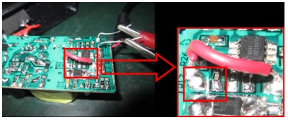 | 分享一個(gè)恒壓恒流帶轉(zhuǎn)燈電源適配器的PCB設(shè)計(jì)走線方法和一個(gè)失敗案例 電源適配器PCB設(shè)計(jì)走線方法請(qǐng)看圖: ![]() (a) 電源適配器地線的Layout原則 如(1)(2)(3)綠線所示,R11的地和R14的地連接到芯片的地,再連接到EC4電解電容的地。注意不可連到變壓器的地,因?yàn)樽儔浩鞔渭?jí)A->D3->EC4->次級(jí)B形成功率環(huán),如果ME4312芯片的地接到次級(jí)B線到EC4電容之間,受到較強(qiáng)的di/dt干擾會(huì)導(dǎo)致系統(tǒng)的不穩(wěn)定等因素。 失敗案例: ![]() 造成的問(wèn)題:轉(zhuǎn)燈時(shí)紅燈綠燈一起亮,并且紅燈綠交替閃爍。 整改措施: 通過(guò)斷開PCB銅箔使用一根導(dǎo)線連到輸出電容地,隔開ME4312B芯片地,如下圖: ![]() 通過(guò)以上處理,燈閃問(wèn)題已經(jīng)解決,測(cè)試結(jié)果如下: CV15V 1.043A CV14V 1.043A CV13V 1.043A CV12V 1.043A CV11V 1.043A CV10V 1.043A CV9V 1.043A CV8.5V 1.043A CV8V VCC欠壓保護(hù) 0-94mA轉(zhuǎn)綠燈 96mA以上轉(zhuǎn)紅燈 轉(zhuǎn)燈比例 94/1043=9%,轉(zhuǎn)燈比例可以控制在3-12% 分享一個(gè)較近直流電源適配器貼片電容漲價(jià)的應(yīng)對(duì)小技巧,貼片電容都預(yù)留一個(gè)插件位置,或104都改為224P,這樣相對(duì)便宜很多。