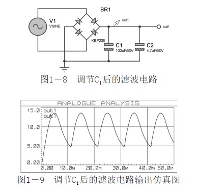 ![]() 為了驗(yàn)證65W桌上型電源適配器濾波電容的效果,在原電路輸入基礎(chǔ)上將濾波電容C1改為100μF,輸入信號(hào)依然為15V、50Hz的交流信號(hào),設(shè)置方法如圖所示。利用軟件圖表功能仿真out1端輸出波形,如圖所示。 ![]() 如圖所示,濾波電路中電容大小直接影響電路的濾波效果。若將電容值設(shè)置過小,電路的濾波效果也會(huì)減弱。 綜上所述,輸入的交流信號(hào)經(jīng)整流電路整流,又經(jīng)濾波電路,后面將穩(wěn)定有效的電壓由out1端傳輸至穩(wěn)壓電路模塊。可見,濾波電路在電路設(shè)計(jì)中是十分重要的。