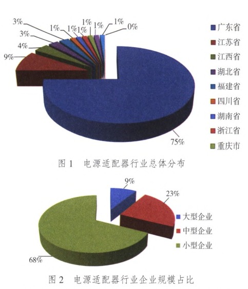 | 電源適配器(poweradapter)指的是選購電子設備時配備的配件裝置或單獨選購的可用于部分家用電器充電的電子設備。總體來說,它是一種電子配件設備,主要作用是將交流電轉換為低壓直流的裝置。電源適配器廣泛運用于配套的安防攝像頭、機頂盒、手機、平板電腦、照相機、筆記本電腦等電器。 電源適配器按工作原理主要可分為兩種:開關電源和線性電源;按主要用途 可分為音頻系統類電源適配器(用于音箱)、信息技術類電源適配器(用于筆記本電腦)、電信終端類電源適配器(用于手機);按充電時間可分為普通充電器和快速充電器。這其中,音頻系統類電源適配器、信息技術類電源適配器和電信終端類電源適配器均在強制性產品認證目錄內,分別屬于0907類和0807類。 國內產業分布 電源適配器屬于CCC國家強制目錄設備,從CCC獲證情況來看,國內電源適配器生產廠家主要分布在沿海地區和一部分中部地區,以廣東分布較多,約有680家電源適配器廠家,生產廠家總數約占全國總總數的75%左右。目前,國內生產制造加工區域集中分布在珠三角地區,主要是深圳、東莞、惠州、廣州等地;繼而是長三角地區,以江蘇省的蘇州市、無錫市等地為主導;而京津冀(北京、天津、河北)地區的制造加工廠家很少。具體如圖1所示。從企業規模來看,國內電源適配器生產廠家大部分為中小型企業,電源適配器大、中、小型規模企業總數各約占廠家總數的9%、23%、68%。具體如圖所示。