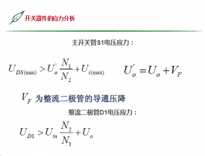 ON:開關管導通,變壓器原邊充電,二極管判斷,負載由輸出濾波電容供電。 OFF:開關管關斷,二極管導通,變壓器儲存能量通過二極管各負載側傳送。 基本輸入輸出關系: