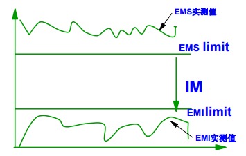 電源適配器EMI和EMS是相互對立的兩個方面,上圖說明,設備的EMI極限值與EMS極限值之間應該留有足夠的余量(IM),即設備EMI發射要小于其抗擾度(EMS),這樣設備才有足夠的抗干擾能力。另一方面,設備的EMI、EMS實測值應該與極限值之間有足夠的余量。比如在EN300 386標準中,輻射發射的極限值(EMI Limit)為40dBuV/m,而輻射抗擾度極限值為130dBuV。由此可見,EMI、EMS極限值之間余量的重要性。