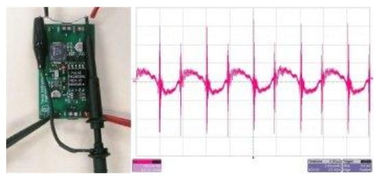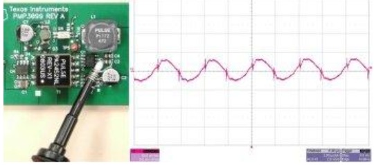 較后,在隔離電源適配器中,會產生大量流經探針接地連接點的共模電流。這就在電源適配器接地連接點和示波器接地連接點之間形成了壓降,從而表現為紋波。要防止這一問題的出現,我們就需要特別注意電源適配器設計的共模濾波。另外,將示波器引線纏繞在鐵氧體磁心周圍也有助于