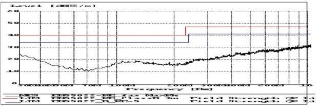 排除外界因素 - 將被測設備關電, 確認背景噪聲是否滿足標準要求 (標準要求電波暗室的背景噪聲在限值線以下6dB) 。