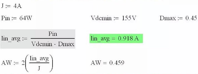 J為無強制散熱情況下每平方毫米所通過的電流值, 若有強制散熱可選擇6A 。 lin_avg輸入電流平均值 2為常數